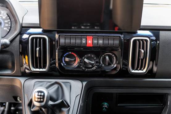 外观方面,全新得意车身前脸采用聚宝吸金造型组合设计,美观大气,寓意着富饶与丰收;双光透镜大灯与全新雾灯的设计组合,年轻动感。驾乘舒适性方面下足了功夫,换挡杆设在仪表台中控区内,与驾驶座构成黄金角度,让驾驶更轻松;12.3寸高清触控大屏;四幅式多功能方向盘集成语音交互、一键唤醒、调频收音、音量控制、电话接听、定速巡航等多种功能按键。动力方面,全新得意国六b发动机配备升级版2830.5变速箱,动力输出更充沛了,扭矩能达到300N.m。可提供2.17米顶高车型,完美通过限高区域。